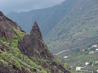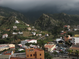 Die heutige Tour von Hermigua nach Vallehermoso war nicht sehr weit. Außerdem dachte ich, dass der Höhenunterschied auf dem Weg nicht mehr als 600-700 Meter betragen würde. Aber auch hier täuschte ich mich. Ebenso wie die zurückliegenden Etappen steht auch diese in voller Länge in keinem Wanderführer, lediglich wenige Teilstücke sind beschrieben. Ab Hermigua ging es immer mal mehr und mal weniger steil hinauf und hinab. Ich startete etwa auf Meereshöhe, mein Barometer zeigte hier 1021 Hektopascal (angenehm hoher Luftdruck). Den ersten "Gipfel" (oberhalb von Juego de Bolas) überschritt ich bei 931 Hektopascal, was in etwa einem Aufstieg von 900 Höhenmetern entsprach. Danach ging es wieder 100 Meter bergab und dann wieder 100 Meter bergan. Insgesamt betrug der Höhenunterschied im Aufstieg somit etwa 1000 Höhenmeter - ich verschätzte mich also um nicht unbedeutende 300-400 Meter. Da Vallehermoso ca. 150 Meter über Meereshöhe liegt, brauchte ich abschließend "nur" 850 Höhenmeter herunter gehen.