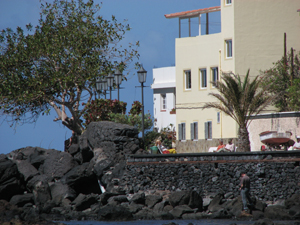 Vor dem Baden gab es ersteinmal mein typisches Kanarenfrühstück bestehend aus Weißbrot, ordentlich Butter (meine ganzen Hosen rutschten nämlich schon wieder) und oben drauf frischen Knoblauch in Scheiben geschnitten. Ich sage mal: "Rasierwasser brauche ich nicht!". Anschließend lief ich von La Calera nach Vueltas und schaute mich ein wenig in den Läden dort um. Eingekauft habe ich nichts.