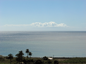 Heute ist nicht viel passiert, ich war baden und hab meinen müden Gelenken einen Tag Erholung gegönnt. Das Wetter war das erste Mal nach einigen Tagen halbwegs stabil, die Sonne schien häufiger, bewölkt war es zwar teilweise immernoch und insbesondere in den Bergen schien es weiterhin zu regnen. Der Blick talaufwärts ließ das vermuten, unstrukturierte dunkle Wolken hingen da herum. Am Meer war es besser: kein Regen. Allerdings war es auch nicht sehr warm, etwa 22 Grad und der Wind war nach wie vor böhig. Immer wieder fegte er über den Strand und trieben dunklen Sand vor sich her. Ich war eh eingesaut, so dass mich das nicht weiter störte.
