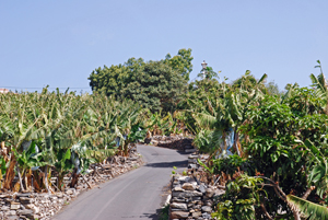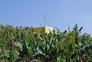 Auf dem Weg zurück in mein Appartment musste ich sehr dringend auf die Toilette. Als die Straße zwischen La Playa und La Calera noch keine zweispurige Piste mit Fußweg war, hatte man relativ einfach die Möglichkeit, mal schnell in den Bananenplantagen zu verschwinden und dort seine Notdurft zu verrichten. Jetzt ist das nicht mehr so einfach: a) lockt die neu entstandene Flaniermeile zahlreiche Besucher an (Flaneure), b) gibt es, seitdem die EU gesagt hat: Subventionen für die leckere Cavendish-Banane benachteiligten die redlich arbeitenden Bananenbauern in Costa Rica, immer weniger Bananenplantagen auf La Gomera. Dafür aber viele offen gelassene Parzellen mit schwachem Bewuchs. In La Dama ist das letzte verbliebene zusammenhängende Bananenanbaugebiet auf La Gomera, dem man abnimmt, dass es dem Broterwerb dient. Ich musste also die Zähne zusammenbeißen und konnte erst in meinem Appartment...